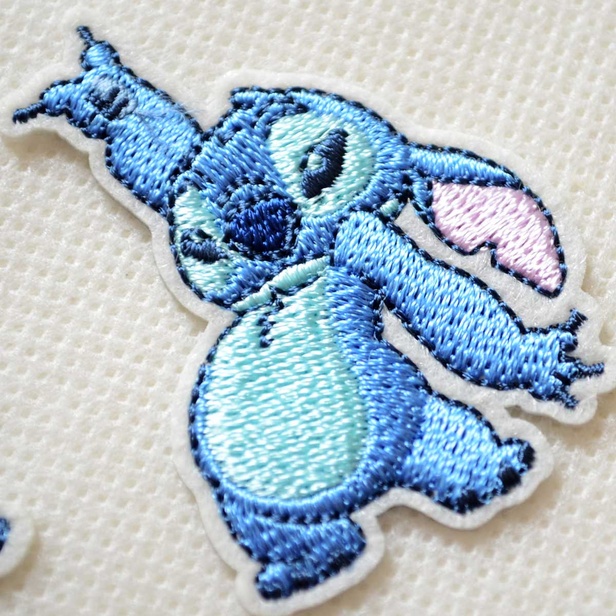 ディズニーの人気キャラクター スティッチの2枚組刺繍ワッペン です。
