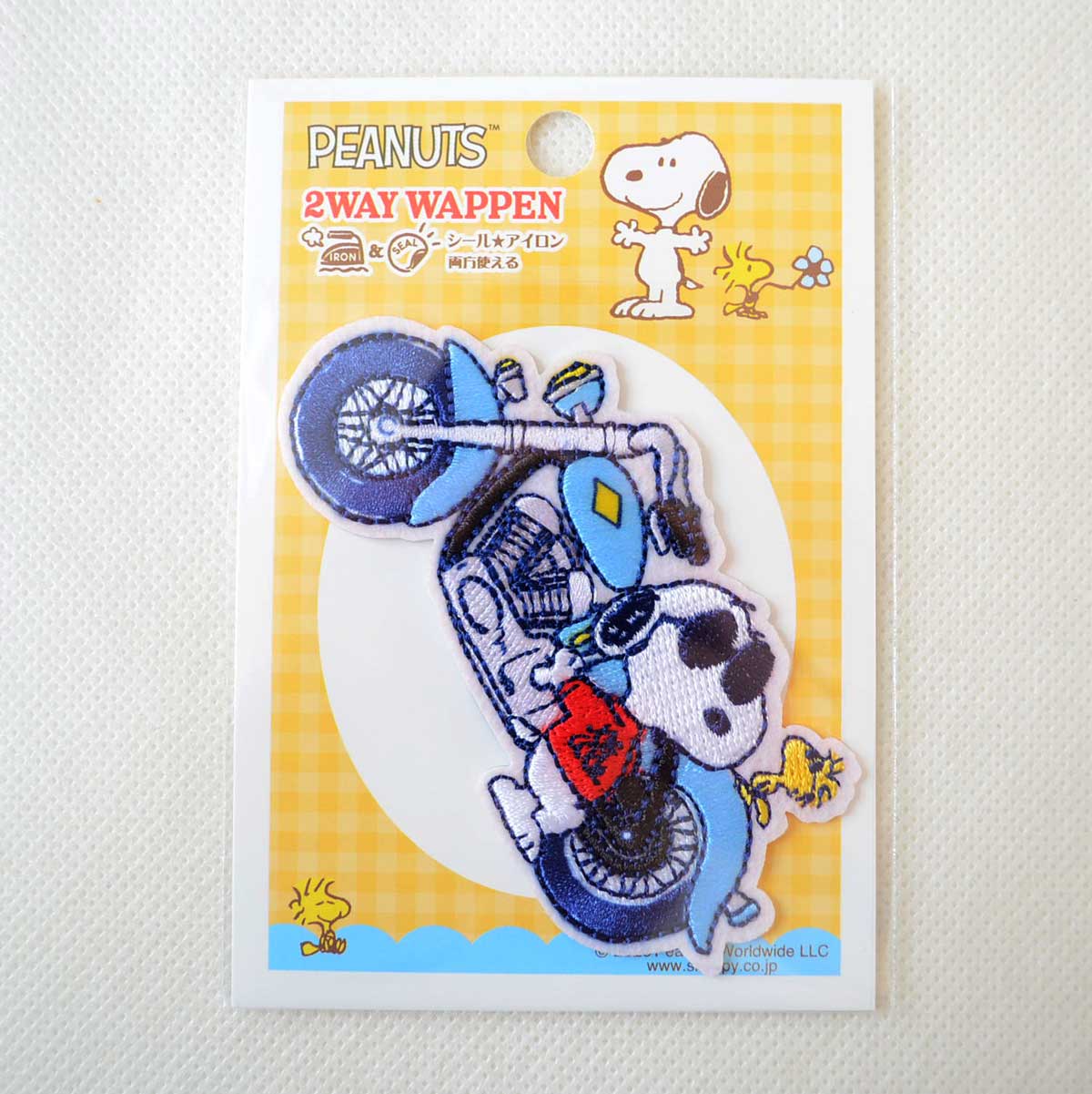 スヌーピー ワッペン 刺繍 2WAY(シール・アイロン両用) ピーナッツ バイク オートバイ ウッドストック キャラクター アップリケ グッズ