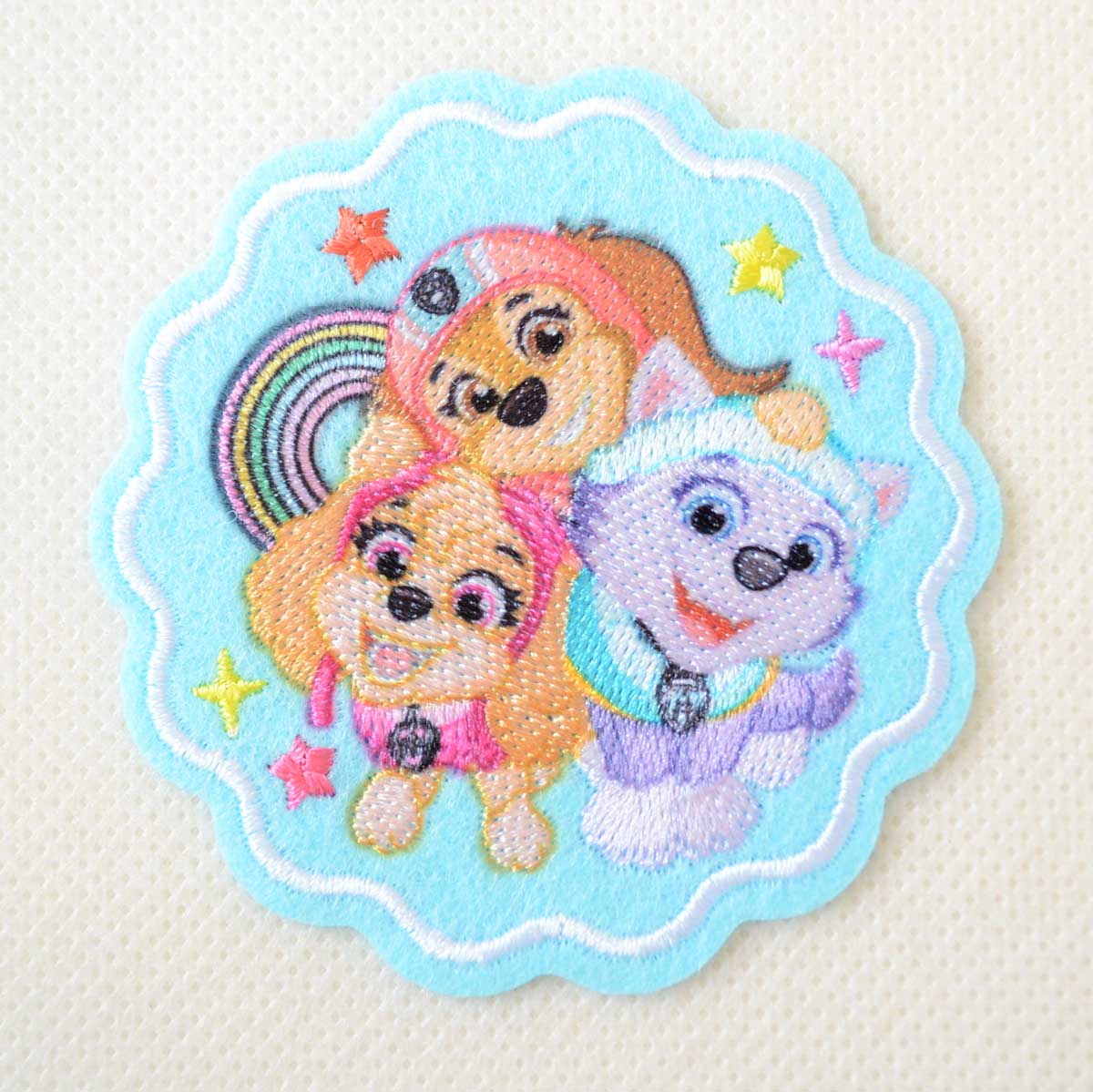 当商品は、テレビアニメや映画「ザ・マイティ・ムービー」でも大人気のキャラクター、スカイ、エベレスト、リバティの3人が揃った高品質な刺繍アップリケです。