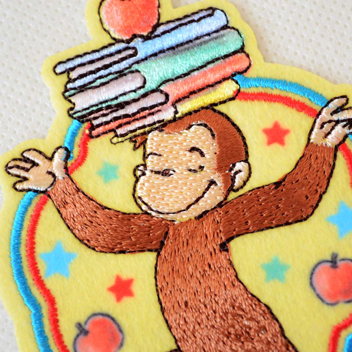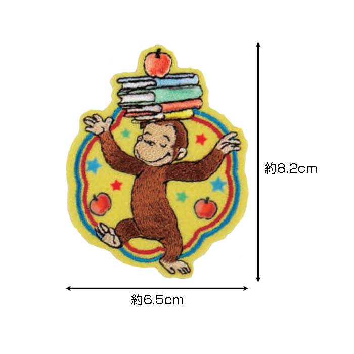 おさるのジョージ ワッペン 本とりんご 2WAY (シール・アイロン接着) 入園入学準備 ワンポイント刺繍