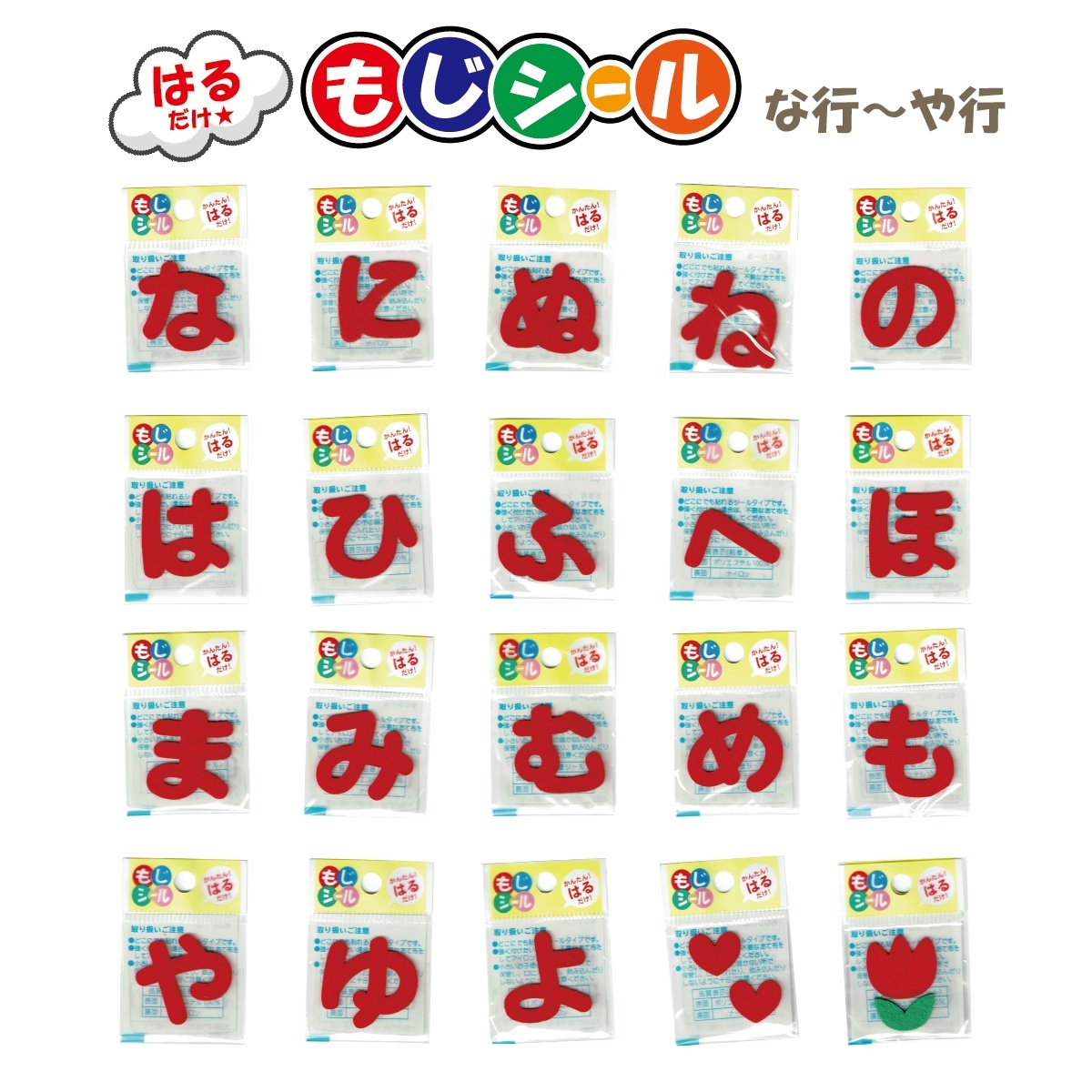 ひらがな な行 は行 ま行 や行 ワッペン フェルト もじ シール 赤 レッド シール タイプ アイロン 不要 入園入学 通園通学 名札 お名前 PIONEER E86
